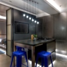Eine weitere stilvolle und trendige Option - minimalistischer Stil. Es bleibt zu jeder Jahreszeit relevant. Dieser Stil eignet sich auch zur Dekoration solcher kleiner Studio-Apartments. Im Gegensatz zum skandinavischen Motiv wird hier eine Vielzahl moderner Materialien verwendet. Dazu gehören Kunststoff, Aluminium, Glas. Mit Hilfe von ihnen können Sie interessante Optionen für Ihre Wohnung erstellen.