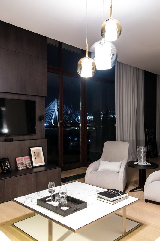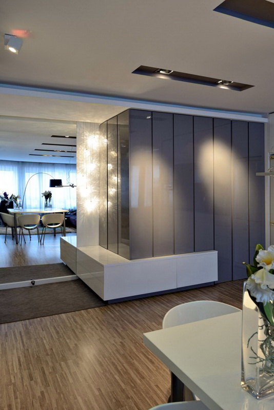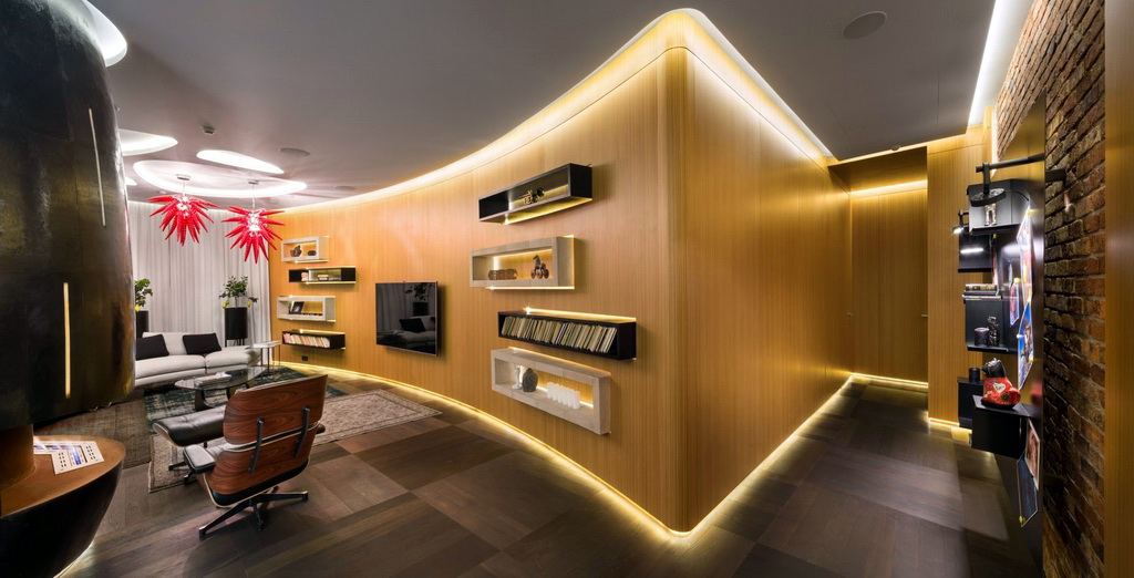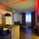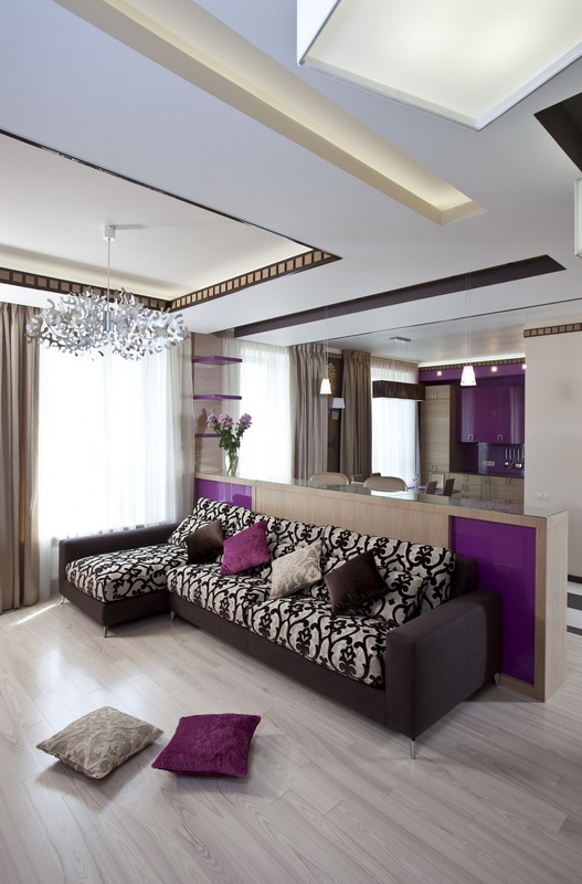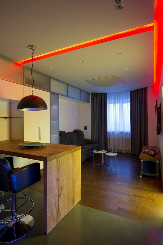 In diesem Fall, unterschätzen Sie nicht und künstliche Beleuchtung. Das zentrale Licht ist nicht mehr das Hauptlicht in modernen, stilvollen Wohnungen. Es ist besser, gerichtete Beleuchtung mit Lampen, Wandlampen usw. zu verwenden. So können Sie die richtigen Stellen in Ihrer Wohnung hell machen und bestimmte Bereiche abblenden. Zum Beispiel kann ein Schlafzimmerbereich mit Umgebungslicht beleuchtet werden, um Komfort zu schaffen. Das Spiel von Farbe und Licht ist ein wichtiger Bestandteil bei der Gestaltung jeder Wohnung.