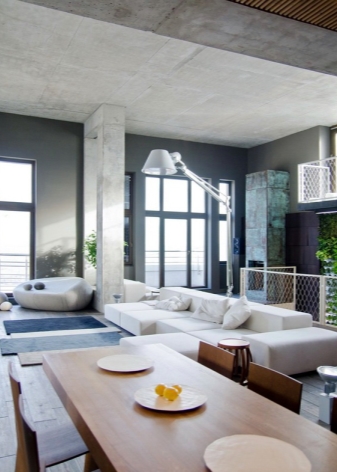Eine Besonderheit des Stils - die Verwendung einer kleinen Anzahl von Accessoires, einfache Möbel, um Platz zu sparen. Um einen Funktionsbereich von einem anderen zu trennen, können Sie verschiedene Partitionen verwenden, zum Beispiel aus Milchglas. Möbel, mit denen Sie eine Wohnung einrichten, sollten nicht nur ergonomisch sein, sondern auch leicht zu bewegen und zu verändern sein. Auch als Trennwand passen Jalousien.