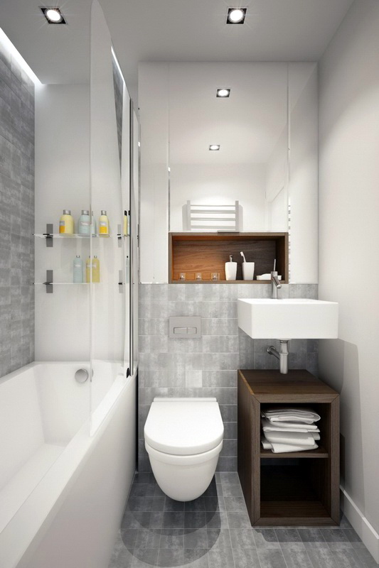 - Wählen Sie für ein kleines Badezimmer ein nicht standardmäßiges schmales und langes Modell der Spüle.
