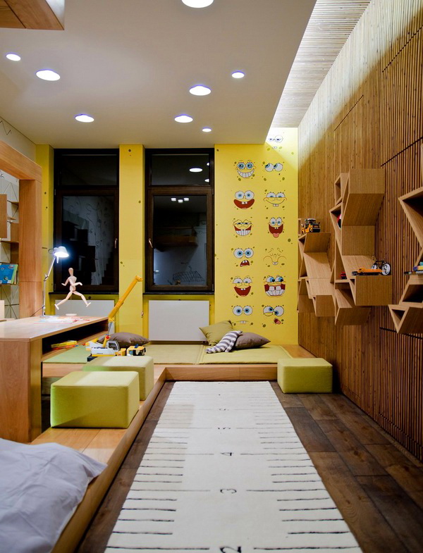 - Wenn es eine Nische in der Nähe Ihres Bettes gibt, können Sie es in ein bequemes Regal umwandeln.