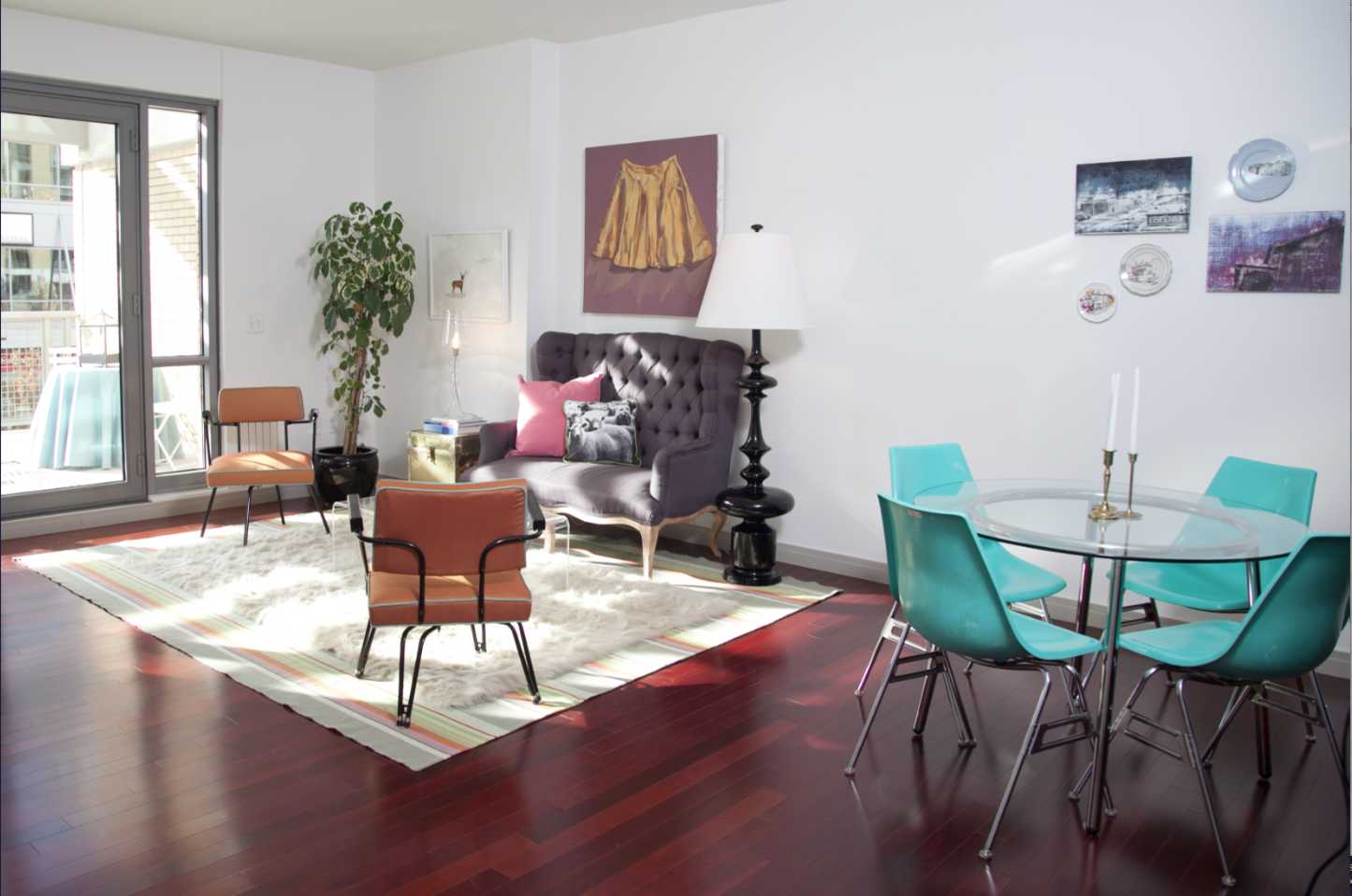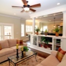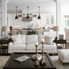 Nachdem der Schlafbereich definiert ist, muss als nächstes ein Wohnraum geschaffen werden. Wenn Sie einen Kamin oder ein großes Fenster haben, ist es ratsam, es zu einem Brennpunkt im Wohnzimmer zu machen, indem Sie die Möbel gruppieren.