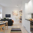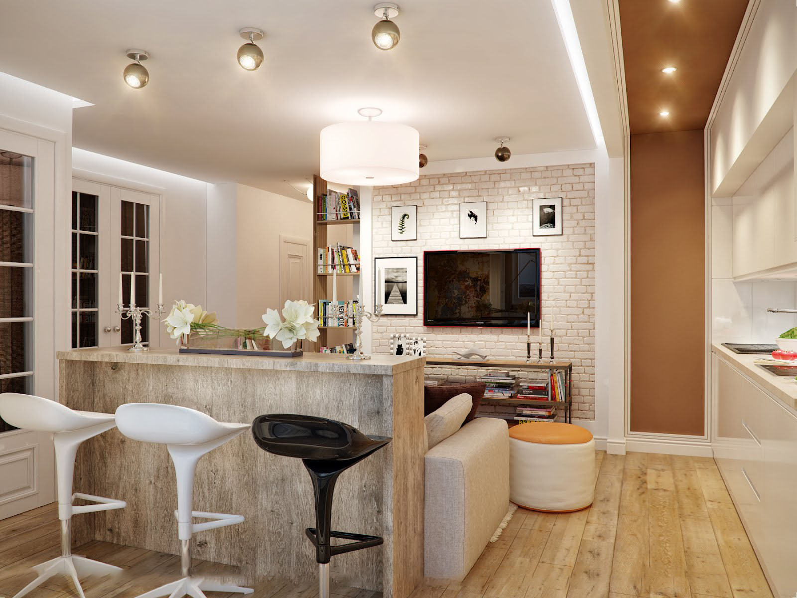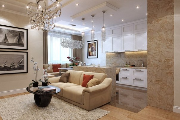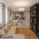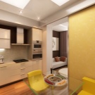 Kleine Wohnungen - Studios in den meisten Fällen sind das Ergebnis der Rekonstruktion von gewöhnlichen Wohnungen, oft - Zimmer in einer Gemeinschaftswohnung. Sie werden erstellt, indem Wände und Trennwände entfernt werden, sowie eine komplette Neugestaltung einer typischen Wohnung.