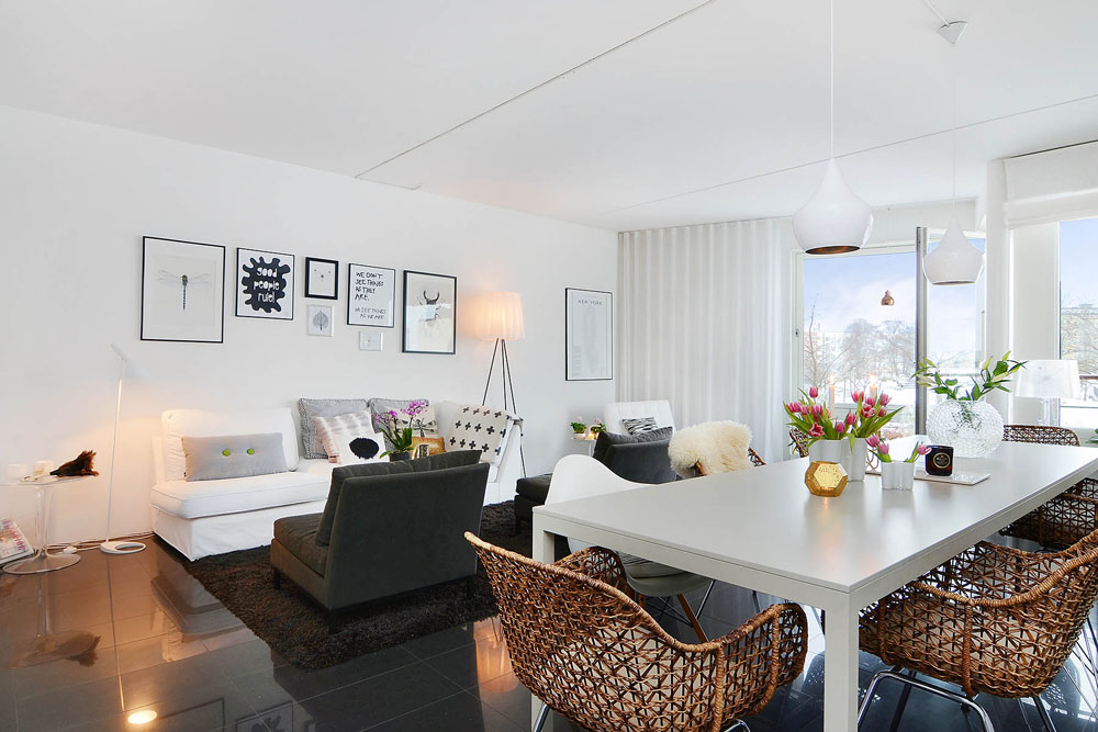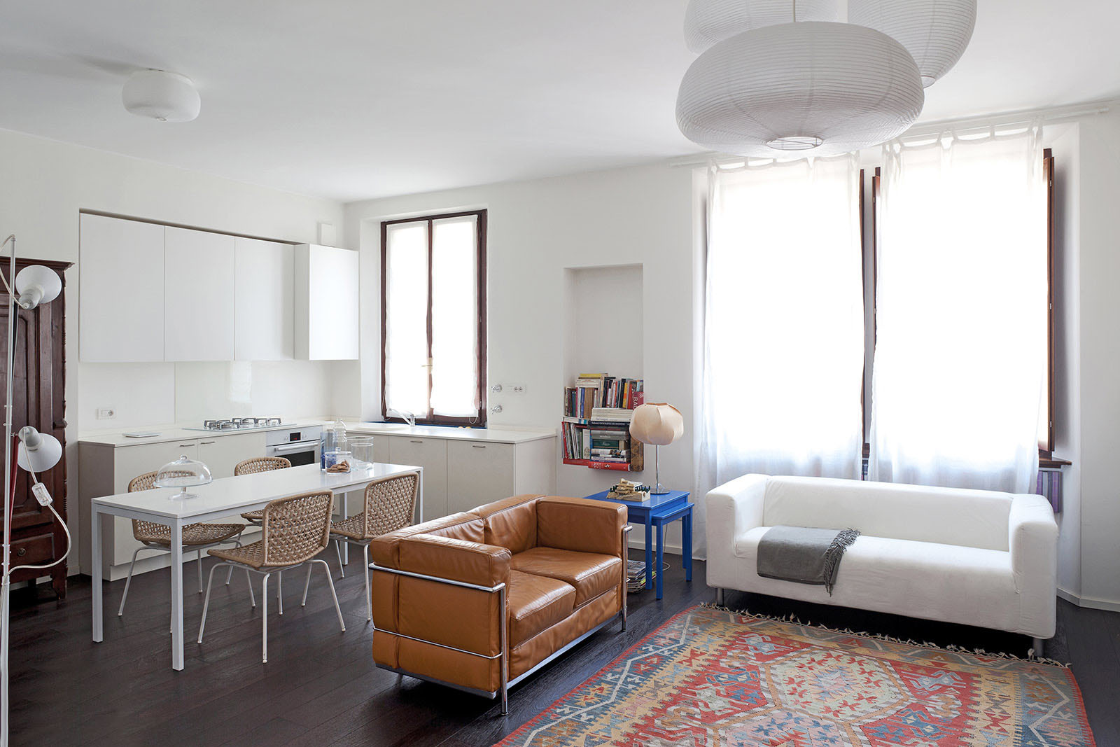 Willkommen minimalistische Designmöbel mit klaren und geraden Linien. Wenn man in dieser Wohnung etwas antikes, geschnitztes und vergoldetes finden möchte, zum Beispiel einen schönen antiken Sessel, von dem man sich nicht trennen will - es lohnt sich, ihn zur zentralen Sache in der Wohnung zu machen.