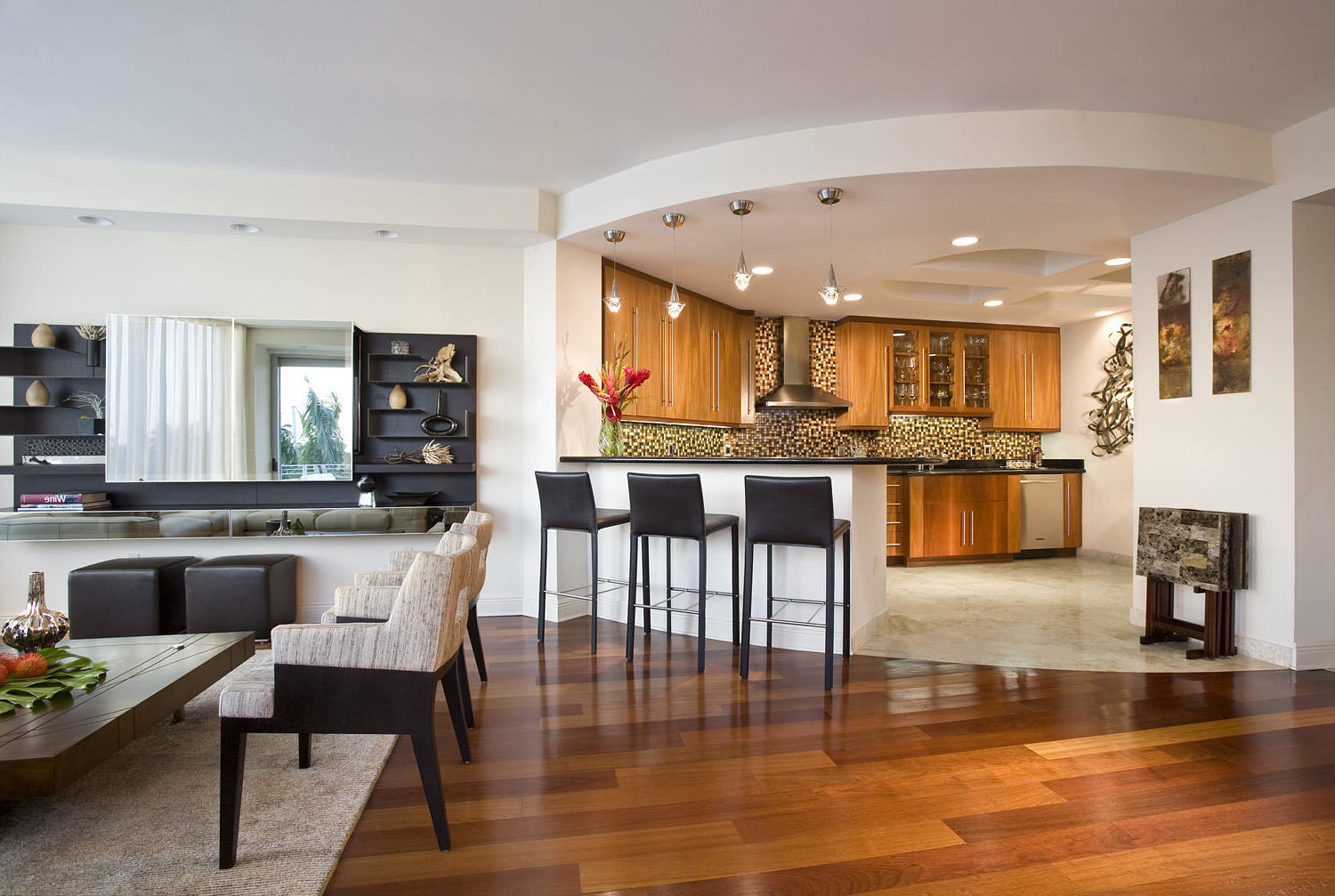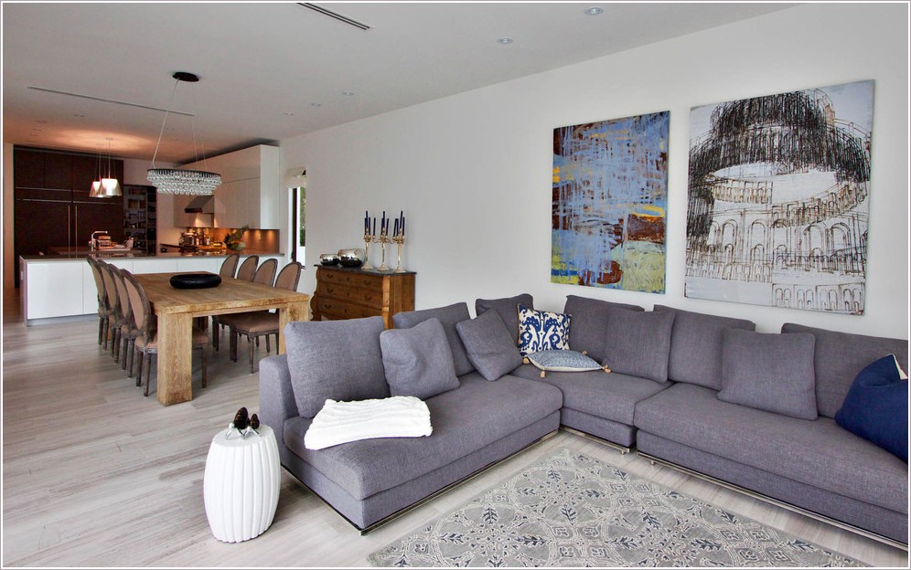 Es ist möglich und die gegenteilige Möglichkeit, wenn der Boden im Küchenbereich etwas abgesenkt ist, wodurch die überragende Bedeutung des Wohnzimmers betont wird.