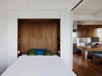 Möbel in einer Unterkunft sollten auch so kompakt wie möglich sein. Sofa Transformator - nur ein Geschenk des Himmels. Es gibt Modelle, in denen buchstäblich alles entfernt und aufgerollt wird. Sie können einen Schranktransformator erwerben. Tagsüber ist das eine gewöhnliche Garderobe, nachts verwandelt es sich mit einer Handbewegung in ein volles Bett.