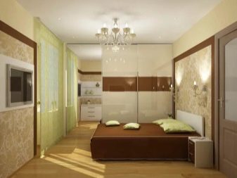 Sie können Zonen auch mithilfe des Kleiderschranks trennen. Und noch besser - zwei Garderobe, die sich gegenseitig zurückstehen. Aber in diesem Fall ist es besser, nicht ein standard breites Fach, sondern zwei schmale Schränke mit Regalen im Inneren zu wählen. Oder ein Schiebeschrank mit einem breiten umwandelbaren Bett. Sehr profitabel und gewinnbringende Wahl.