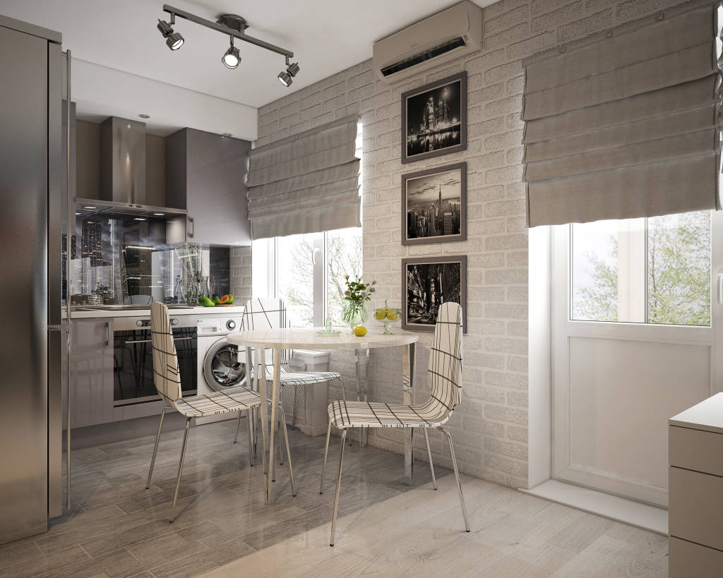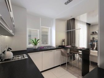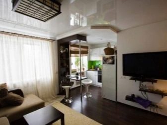 Ein Studio von einer Einzimmerwohnung ist eine kombinierte Küche und ein Zimmer. Für wen ist dieses Küchenstudio? Häufiger für einen kreativen Junggesellen, der gleichzeitig eine kompakte Küche, ein Schlafzimmer und eine Werkstatt braucht.