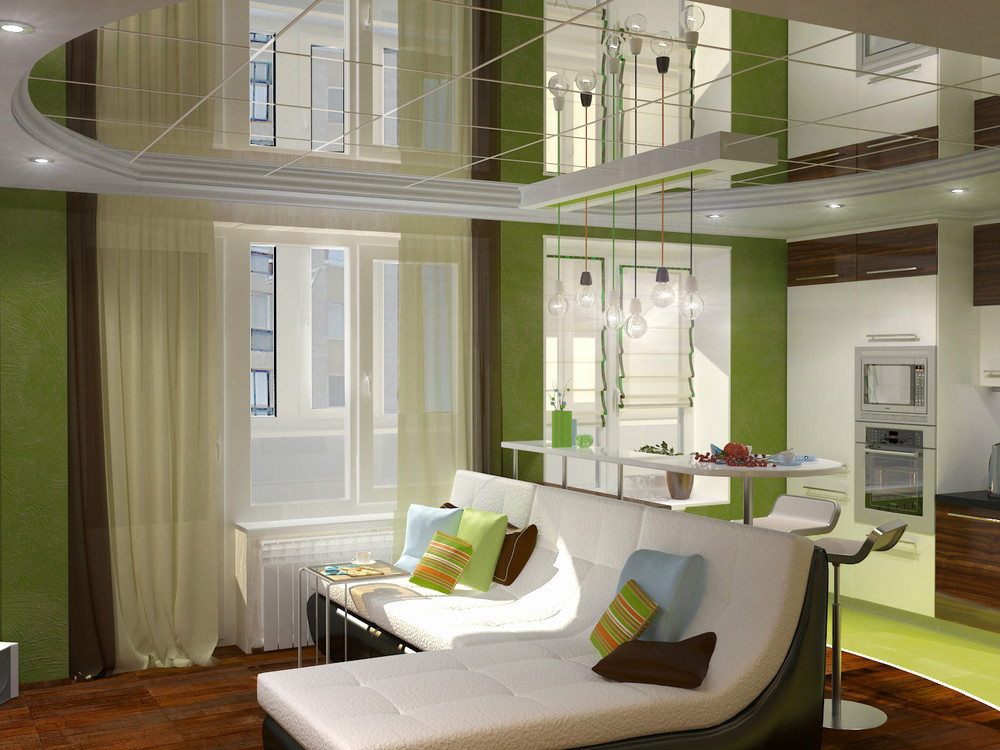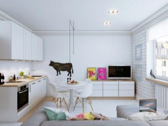 Bei der Erstellung eines Studios sollten die Eigenschaften der Wohnung berücksichtigt werden. Zum Beispiel ist ein Design für ein Studio-Studio mit einem Raum geeignet und für ein Studio mit zwei Räumen ist es völlig anders. Das Küchenstudio kann, im Gegensatz zur üblichen Küche, nicht in seinem speziellen Design, sondern muss mit dem Rest des Raumes kombiniert werden.