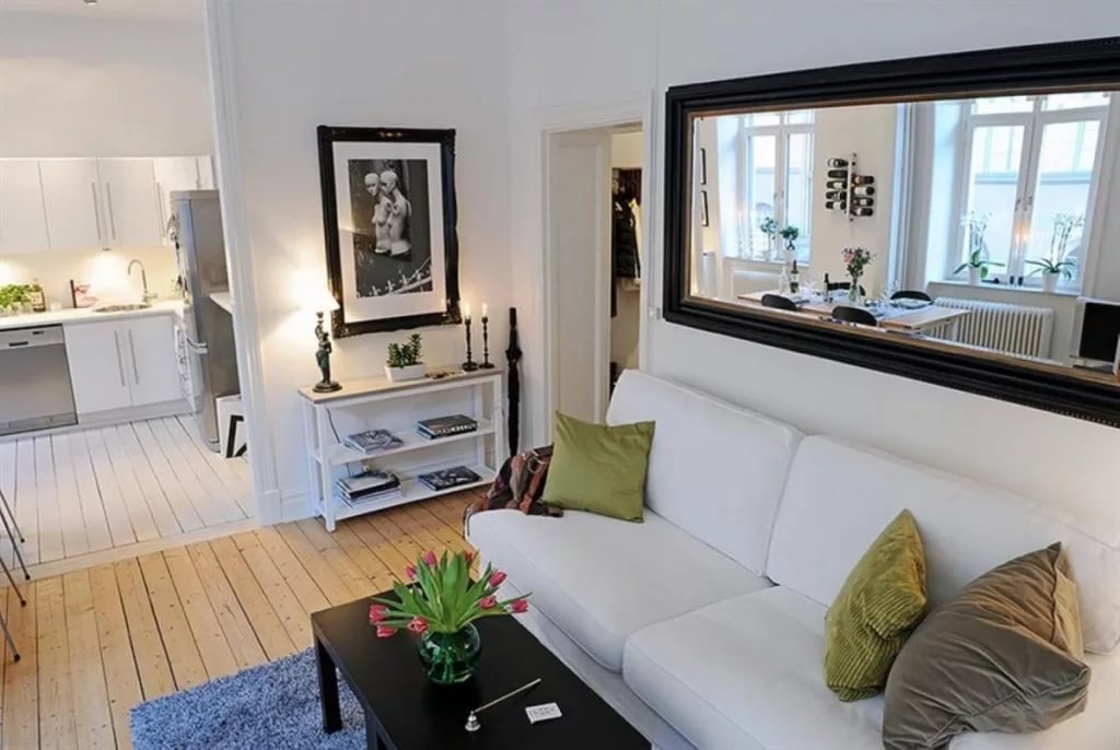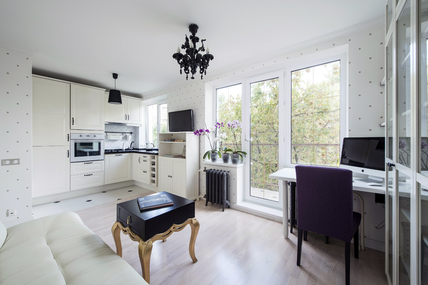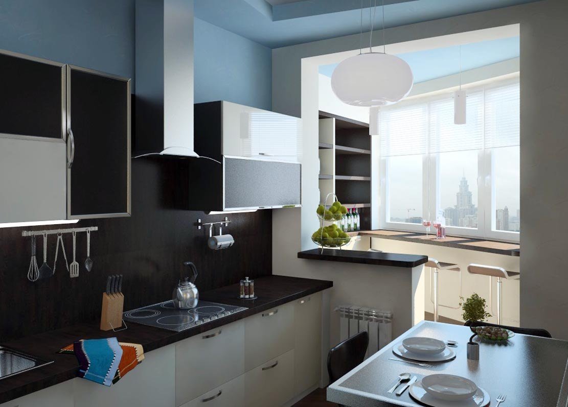 Die beste Möglichkeit, einen engen Raum zu erweitern, ist die Sanierung, bei der jeder Zentimeter zur Nutzfläche wird. Dazu wird die Wand zwischen Küche und Zimmer ganz oder teilweise abgerissen. Oder zwischen zwei Zimmern.Oder ein kleines Zimmer ist mit einem Flur und einer Loggia kombiniert.