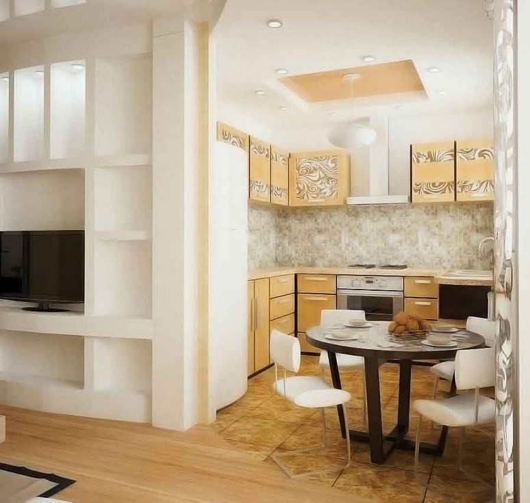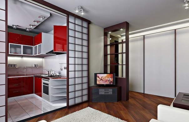Die Küche ist besser vom Rest der Wohnung zu trennen.. Wenn die Partition nicht mitgeführt wurde, kann man sich komplett verabschieden. In einem anderen Fall ist die Änderung der Wand im Bogen an der Stelle der Küchentür geeignet.
