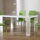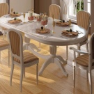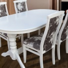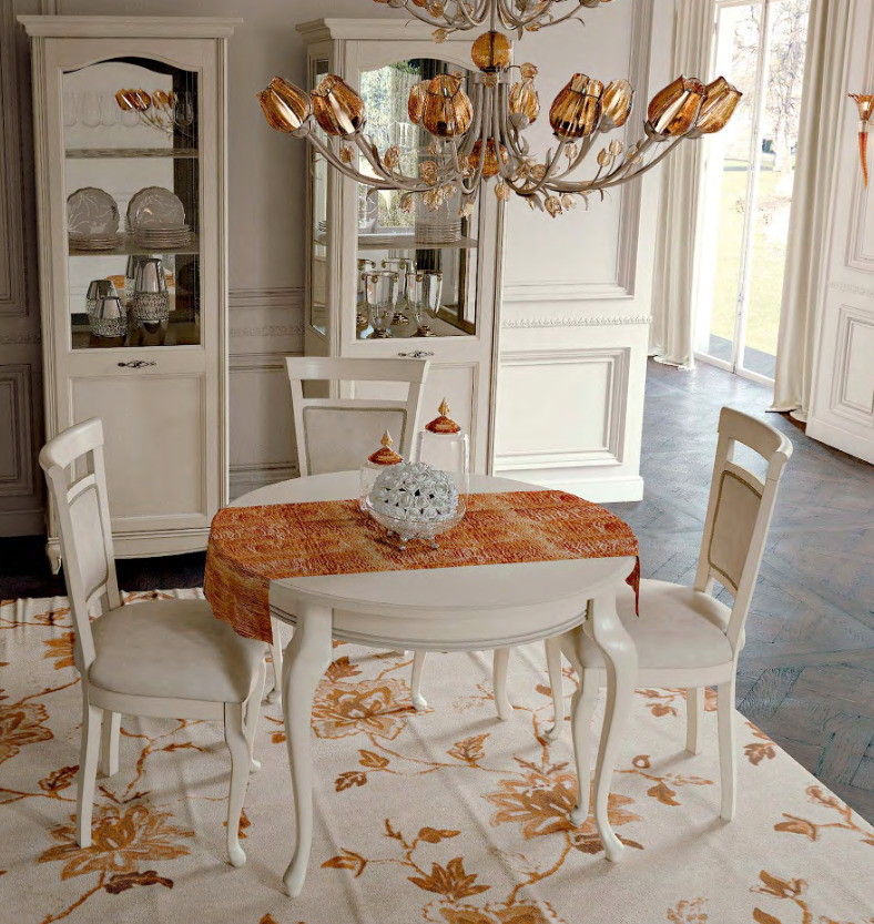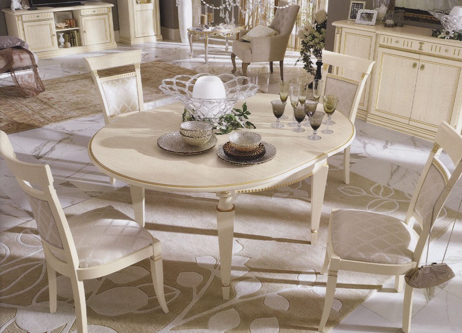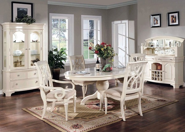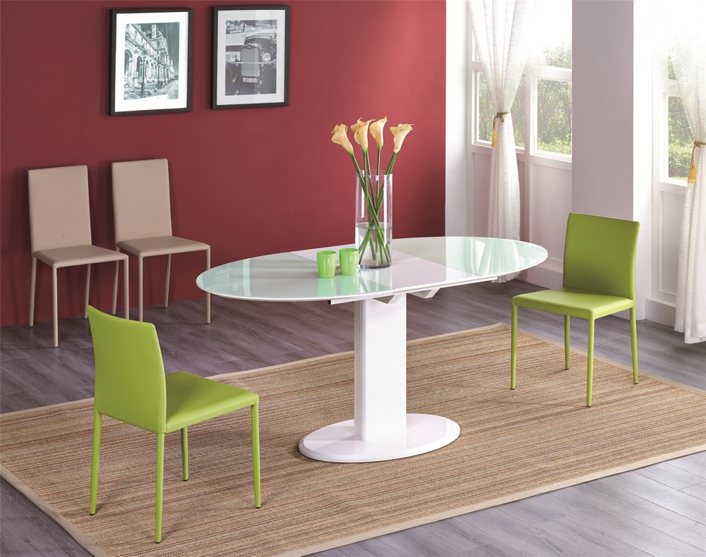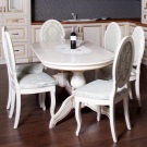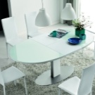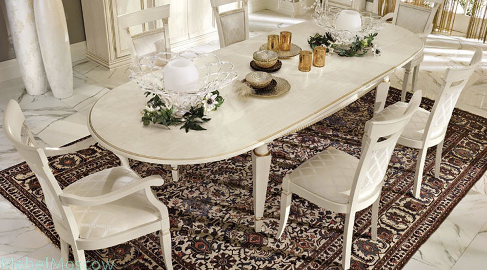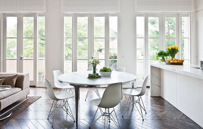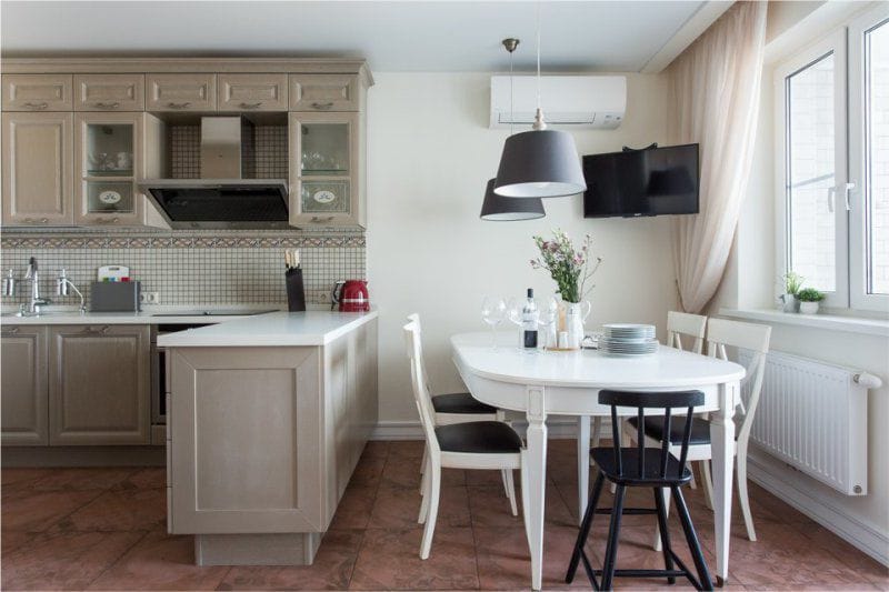 - Rund und oval - Diese Formen sind gut für eine geräumige Küche, weil sie mehr Platz darauf einnehmen.Wenn Sie einen weißen runden Tisch in einem kleinen Raum einrichten möchten, wählen Sie die kleine Größe der weißen Arbeitsplatten aus Holz oder MDF und die Faltbarkeit der Möbel, so dass Sie bei Bedarf die Möglichkeit haben, den Essbereich zu vergrößern.
