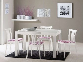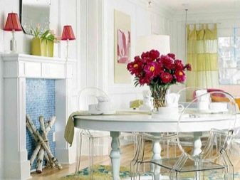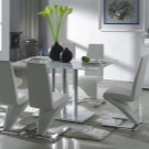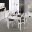 Der weiße Tisch ist universell, um absolut jedes Design zu ergänzen, weiße Arbeitsplatten werden aus jedem Material von einem biegsamen Holz zu einem lakonischen Glas mit einer glänzenden Oberfläche geschnitten, seine Form und Beine bestimmen das Design des Tisches und seine Relevanz in dem einen oder anderen Interieur.