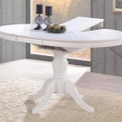 - 1 Bein - Das Vorrecht einer kleinen runden oder ovalen Tischplatte. Die massive Unterstützung des Tisches ermöglicht es Ihnen, den unteren Raum freizugeben und sich für Gäste mit mehr Komfort niederzulassen. Ein runder weißer Tisch an einem Bein ist die ideale Lösung für jede Küche - vom klassischen bis zum hochmodernen Format müssen Sie nur die Beschaffenheit und das Material des Produkts bestimmen.