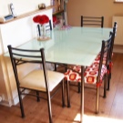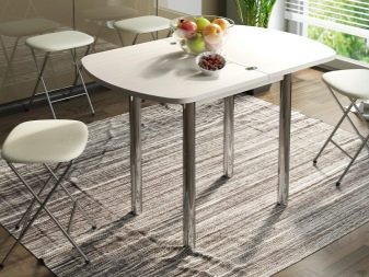 - 2 Beine geeignet für die Bildung eines Essbereiches in einer kleinen Küche; eine solche Tischplatte ist an einer Seite an der Wand befestigt, die zweite ruht auf diesen Beinen. In der Regel wird ein ähnliches Design des Esstischs in einem "rustikalen Interieur oder Standard-Modern" installiert.