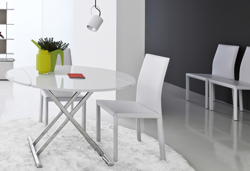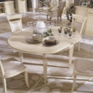 Der Klapptisch hat je nach Form verschiedene Zersetzungsmechanismen und eine zusätzliche vergrößerte Fläche. Rechteckige Modelle nehmen normalerweise um 30-60 cm zu, Tabellenbücher haben eine Vergrößerungsfläche von zweimal, wie die meisten quadratischen Analoga.