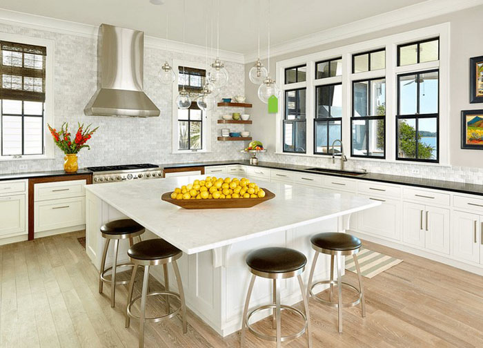 Der weiße Tisch im Inneren der Küche sieht auf jeden Fall organisch aus, unabhängig von der Größe, dem Design des Raumes und dem Stil der Möbel; Auf jeden Fall wird der weiße Tisch angemessen aussehen, Hauptsache, man muss ihn richtig schlagen. Weiße Arbeitsplatten haben Vor- und Nachteile, die wir im Artikelabschnitt diskutieren werden.