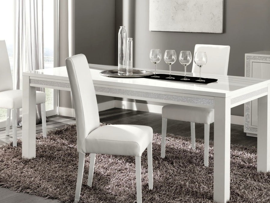 Es ist falsch zu glauben, dass weiße Esszimmermöbel unpraktisch und nicht originell sind, im Gegenteil, weiße Arbeitsplatten werden immer beliebter in modernen Einrichtungslösungen.