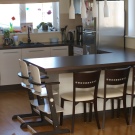 - Stein - moderne Modelle für industrielle Küche. Der Stein ist das widerstandsfähigste Material für die Effekte, absorbiert keine Feuchtigkeit, ist umweltfreundlich, leicht zu reinigen und gibt keine chemischen Reaktionen.Wenn man einen Steintisch benutzt, sollte man sich daran erinnern, dass dies eine ziemlich schwere Konstruktion ist, und es unmöglich sein wird, sie neu anzuordnen. Darüber hinaus ist es nicht für die Küche in einem klassischen Stil geeignet;