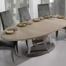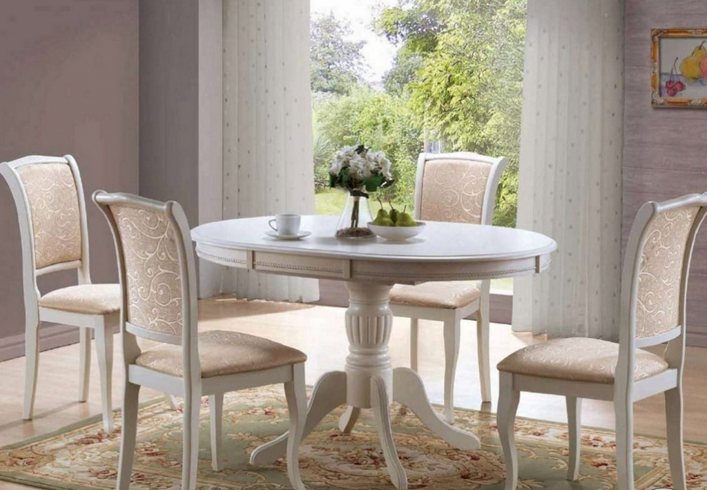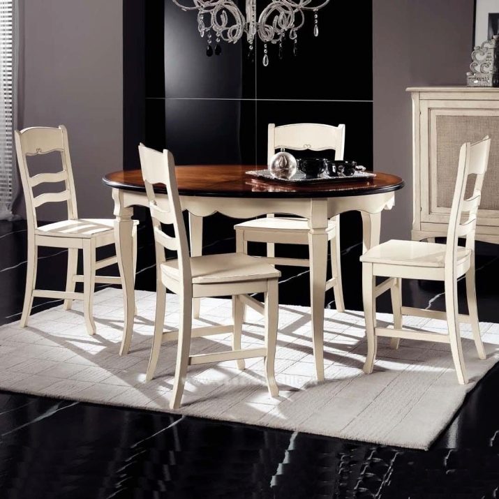Die ovale Tischplatte bezieht sich auf die Zeiten der Klassik und des Barock, passt aber dank ihrer maximalen Funktionalität auch problemlos in das Standard-Interieur. Headsets sind am besten in geräumigen Küchen platziert, um den Raum in Zonen zu teilen. Größe ist auch wichtig. - Der Tisch sollte die Fläche des dritten Teils der Küche nicht überschreiten, sonst sieht er umständlich und unangemessen aus, niemand muss seinen Küchenraum verkleinern. Der ovale Tisch kann übrigens 6-7 Personen aufnehmen, aber dank spezieller Erweiterungen können Sie zwei weitere Personen unterbringen. Dies ist sein Hauptvorteil.