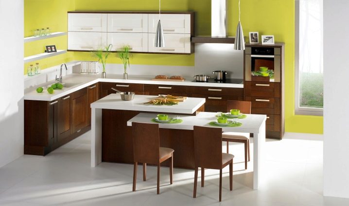 Die Wahl der Arbeitsplatten in der Küche oder im Esszimmer sollte in der Farbe sein.Bitte beachten Sie, dass das Design entweder in der Farbe der Küche oder umgekehrt sein kann - so entstehen harmonische Einrichtungslösungen.