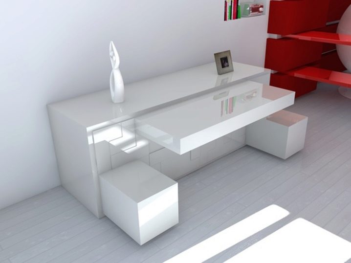 - allgemeine Kombination - dank dieses Kriteriums ist es möglich, alle Teile des Designs auszugleichen, um Akzente richtig zu setzen, indem die Position der Tischplatte verwendet wird;