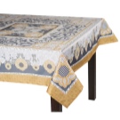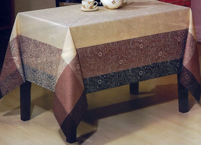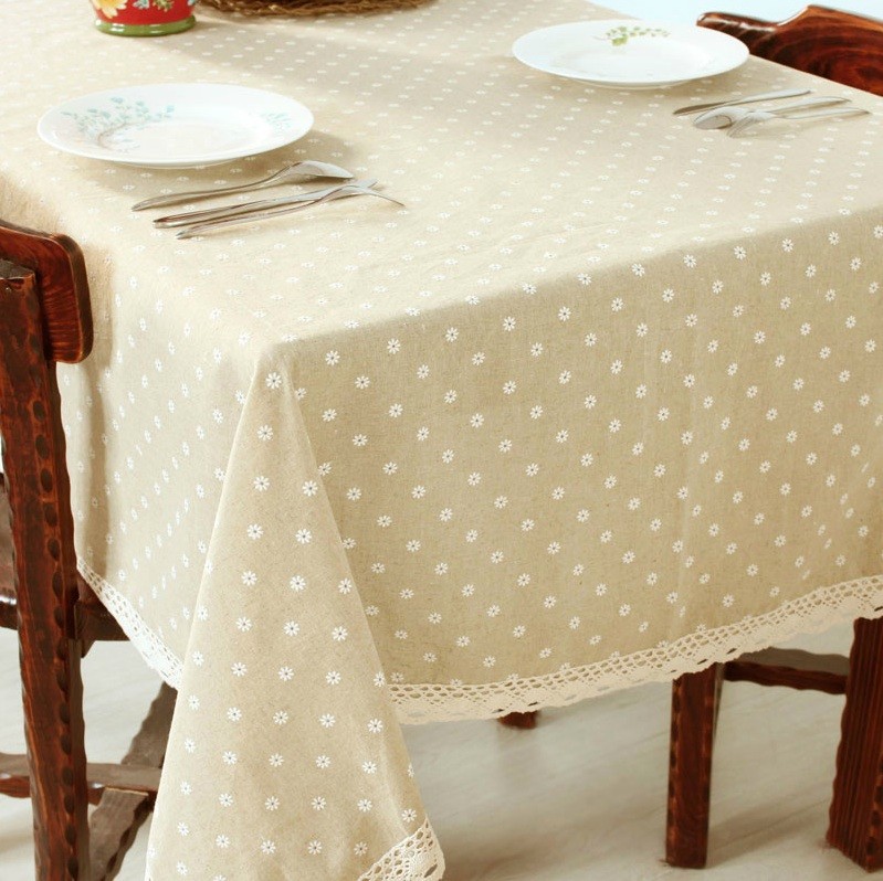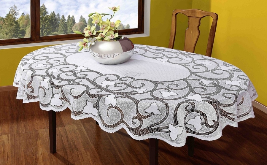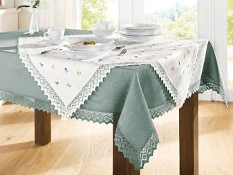 - Baumwolle - dieses Produkt ist für den Einsatz bei jeder Feier gedacht. Die Tischdecke hat ein attraktives Aussehen mit Dekorationen in Form von verschiedenen Stickereien und Mustern.