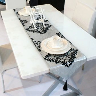 - die Form der Deckung ist anders, am wichtigsten ist es, eine Tischdecke nach den Parametern Ihres Tisches zu wählen;