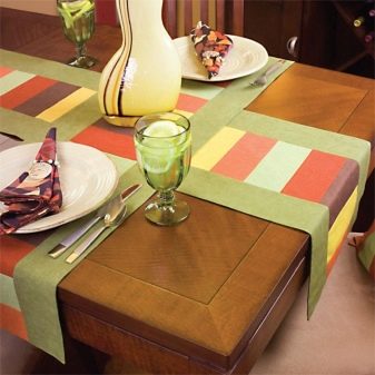 - Schönheit und Vielfalt des Designs. Die Oberfläche der Tischdecke ist in der Regel mit einer Art von Zeichnungen, Mustern, Drucken und verschiedenen Farbtönen dekoriert.