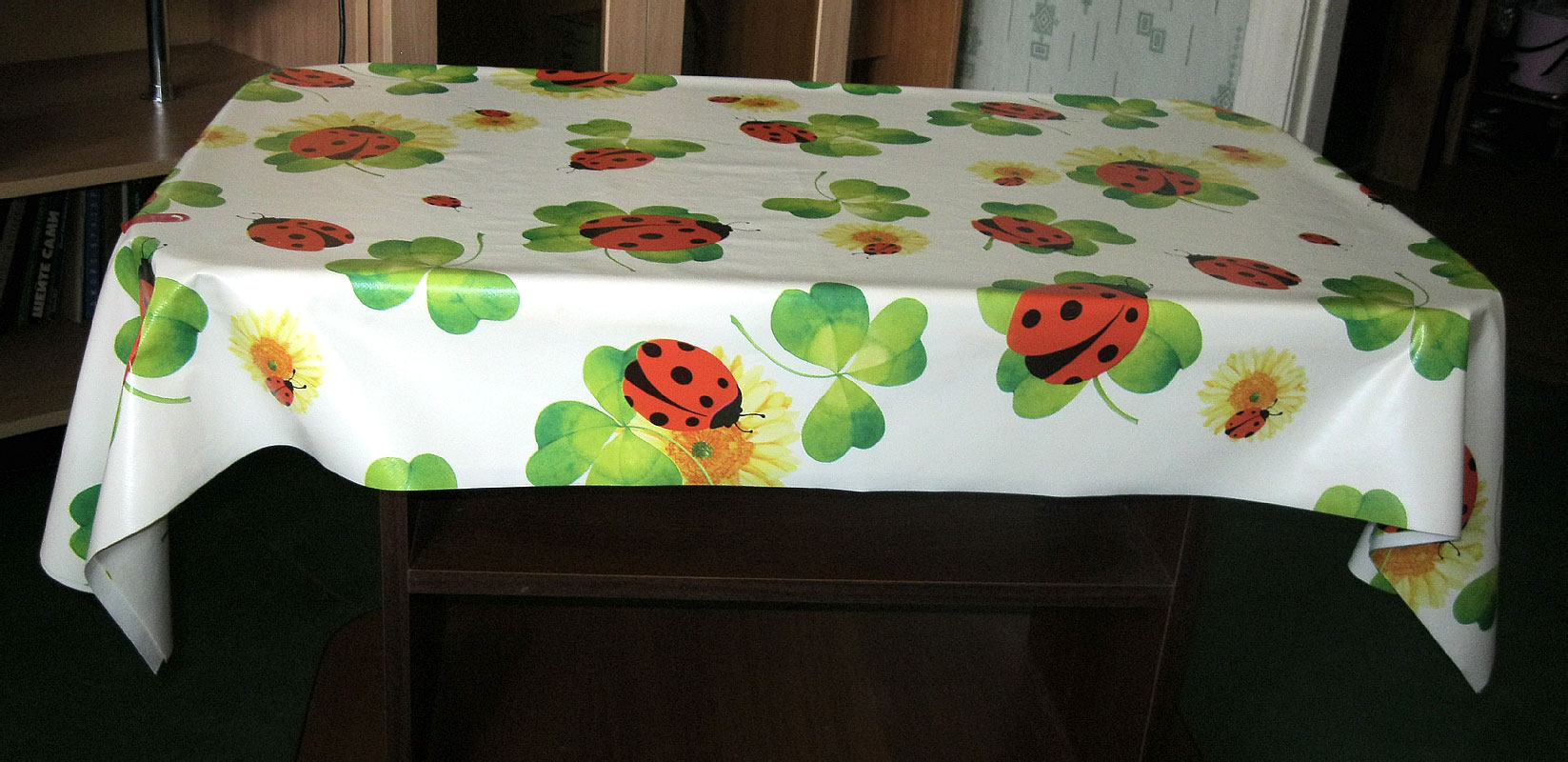 - Das Wachstuch auf dem Küchentisch ist ebenfalls wasserabweisend - das Polyvinylchlorid-Wachstuch hat keinerlei Angst vor hoher Luftfeuchtigkeit und verändert seine Eigenschaften nicht;