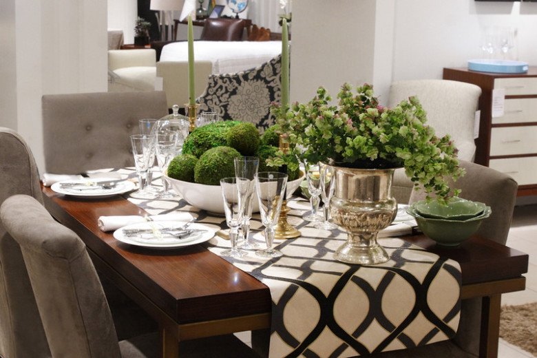 Eine Stoffbahn auf einem rechteckigen Tisch wird unentbehrlich sein, um einen festlichen Tisch zu gestalten.