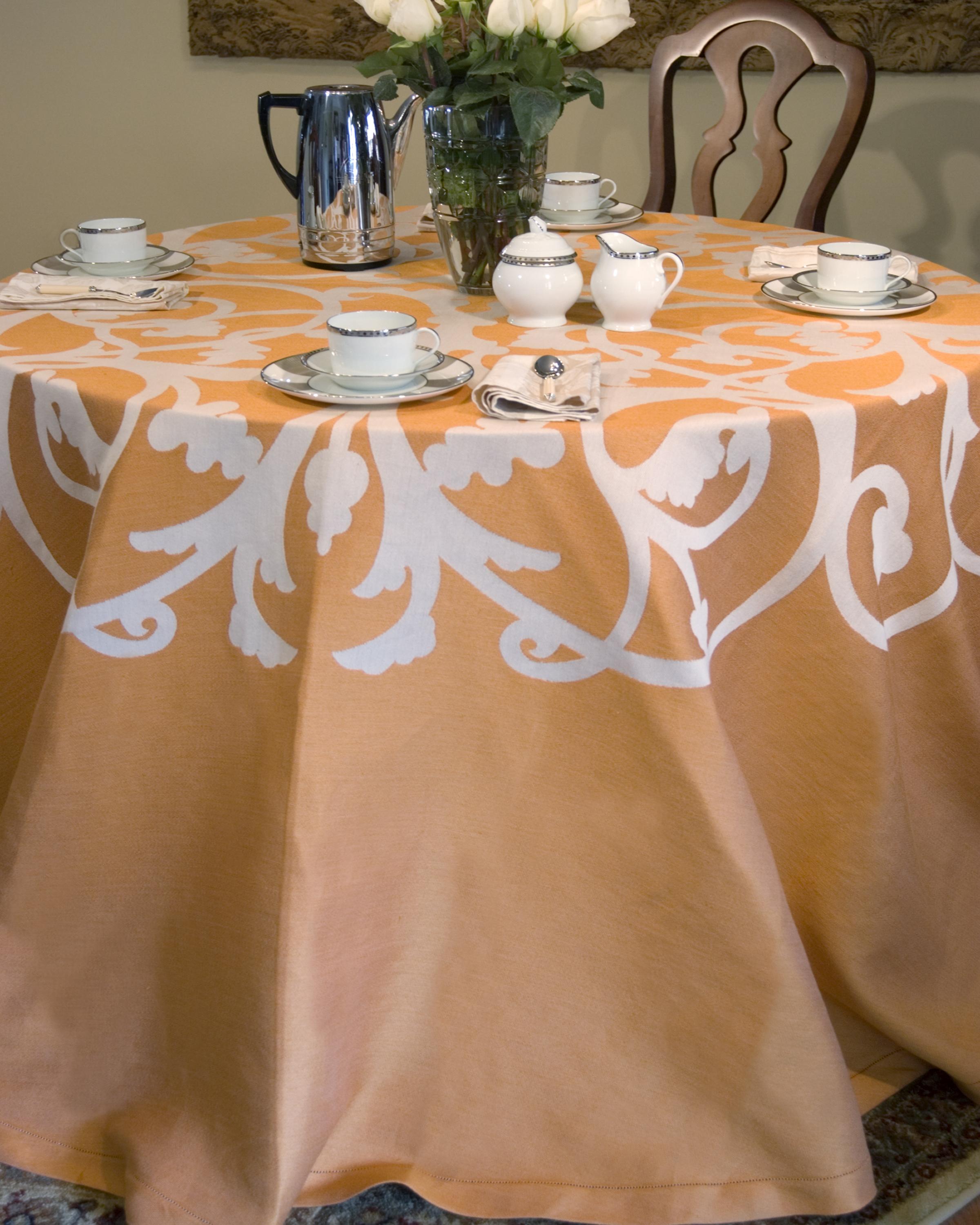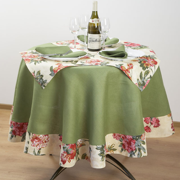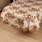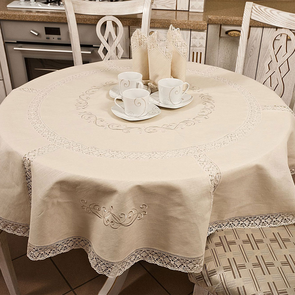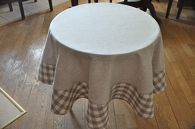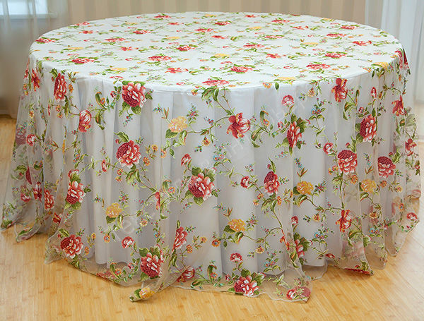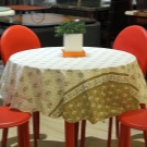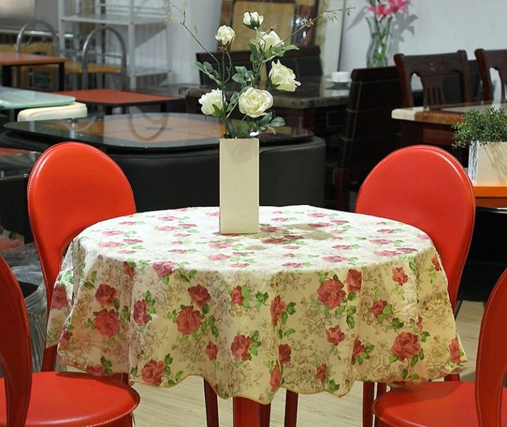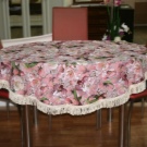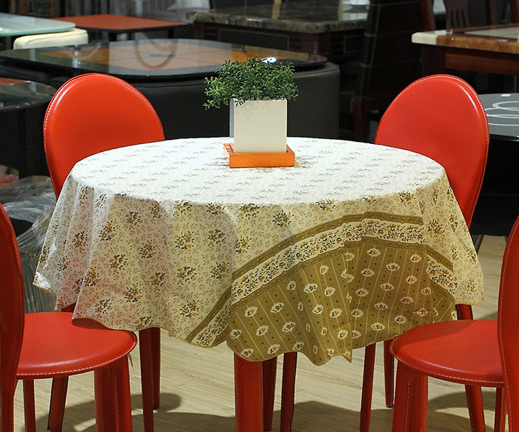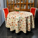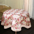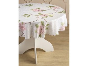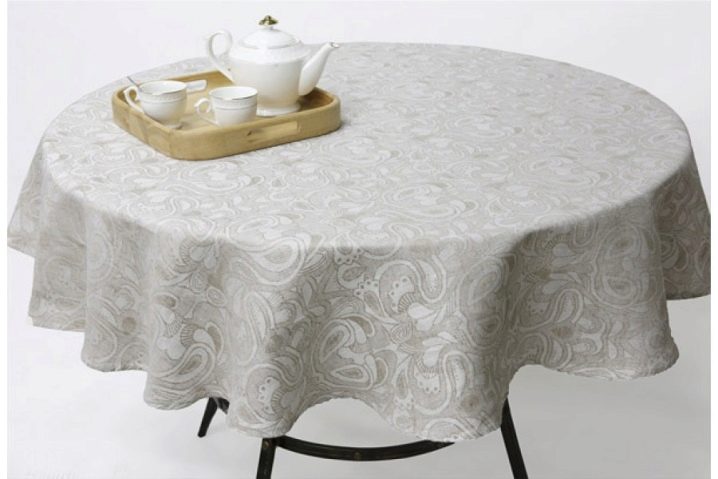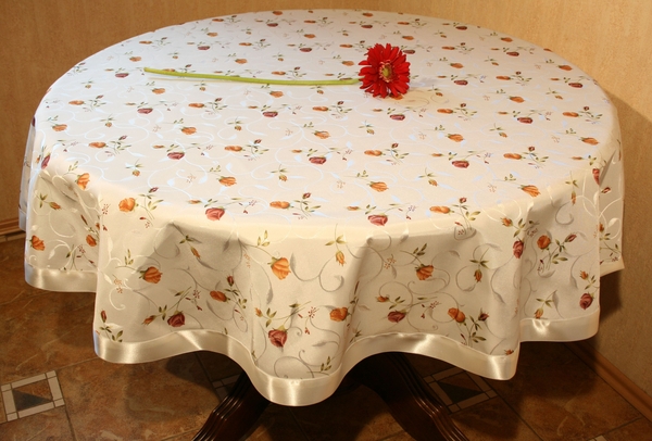 Ein rundes Baumwolltuch kann auch als festliche Option verwendet werden - es ist nur wichtig, das richtige Design zu wählen. Außerdem ist dieses Material nicht brennbar und verursacht aufgrund seines natürlichen Ursprungs keine Allergien. Reine Baumwolle Tischdecke ist nicht sehr praktisch für den täglichen Gebrauch - es wird schnell schmutzig und muss häufig gewechselt und gewaschen werden. Darüber hinaus kann dieses Material während des Waschens schrumpfen, wenn Sie also den Durchmesser des Tischtuches für einen runden Tisch wählen, sollten Sie diesen Moment berücksichtigen und einen Rand von etwa 10 cm nehmen.Wenn Sie das Tischtuch aus Baumwollmaterial mit Polyester aufnehmen, können Sie die Wahrscheinlichkeit einer Kontamination verringern. Um die Farbe des Gewebes gesättigt zu halten, müssen Sie es von innen bügeln.