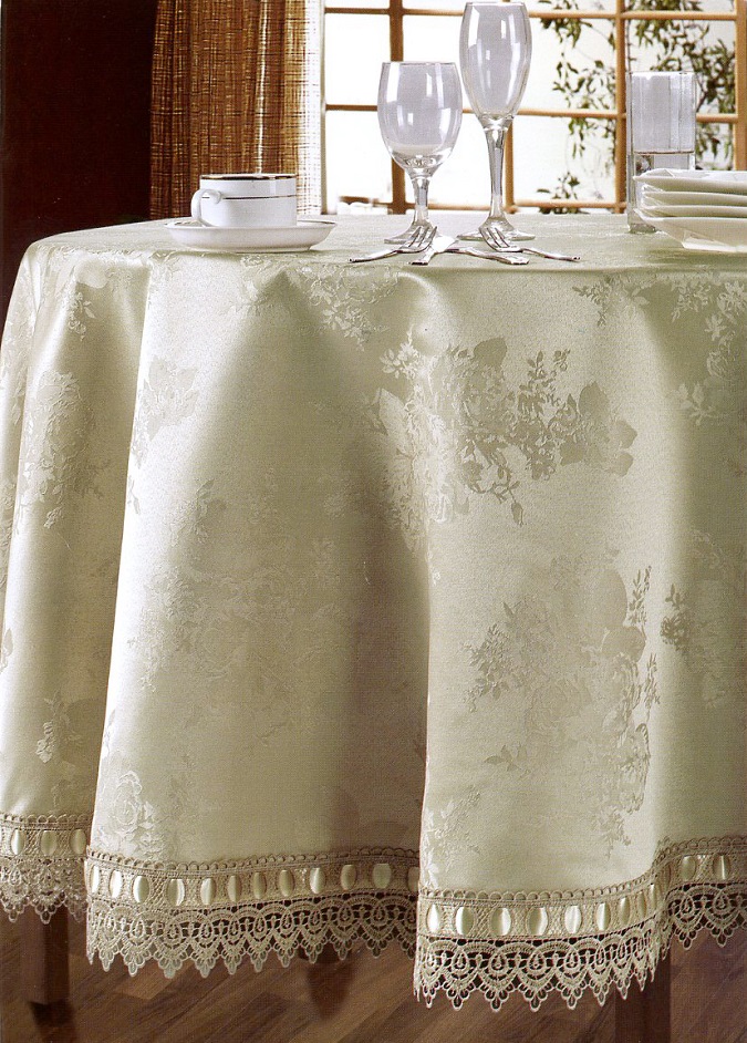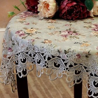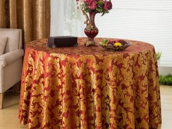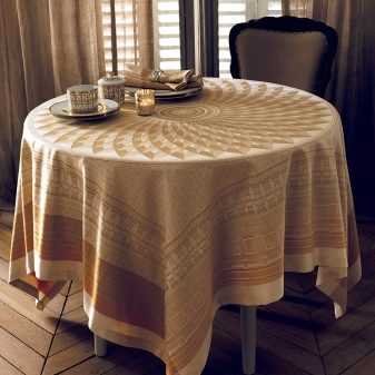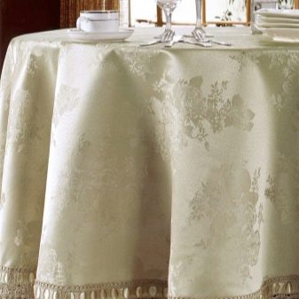 Der Trick solcher Modelle ist, dass sie zweiseitig sind.Die Vorder- und die Nahtseite können sich nicht nur in der Farbe, sondern auch im Muster unterscheiden. In der Tat können Sie zwei verschiedene Tischdecken in einer Version erhalten. Textilien aus diesem Material sehen teuer und feierlich aus. Es ist ein großes Geschenk für eine Hochzeit, einen Geburtstag und andere Gründe. Jacquard hat eine dichte Textur und verschleißt nicht nach zahlreichen Wäschen.