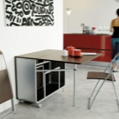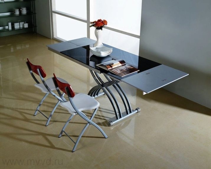 Ein separater Fall kann als Tabellenbücher betrachtet werden, sie sind Schmetterlinge. Im zusammengeklappten Zustand wird es zu einem Schrank, der sehr wenig Platz einnimmt und immer die Möglichkeit hat, es für den vorgesehenen Zweck zu nutzen. Bei einer minimalen Fläche passen zwei Personen dahinter.