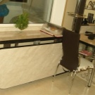 Ein Regal ist eine Variante eines Klapptisches, an dem alle Sitzenden in einer Reihe nebeneinander sitzen. Es kann an einer leeren Wand oder an einem Fenster installiert werden, in diesem Fall werden Sie niemanden an die Enden des Regals stellen.