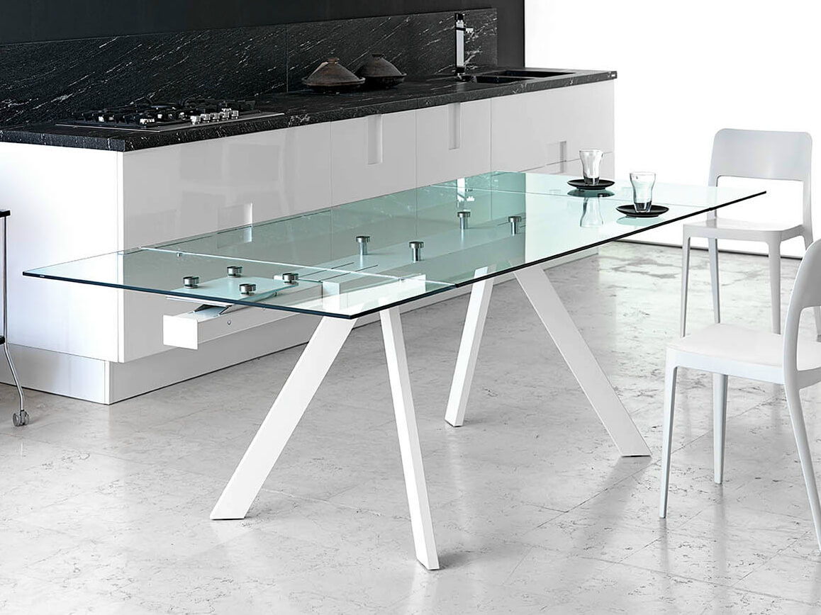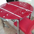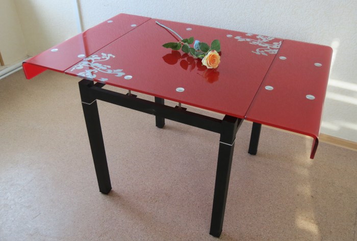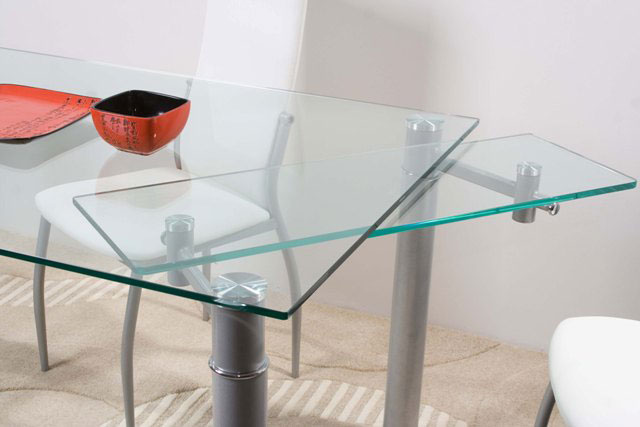 Qualitativ ein anderer Weg - ein Klapptisch mit einer Glastischplatte. Er hat bereits viele Vorteile: