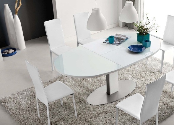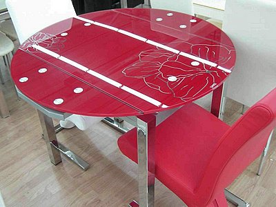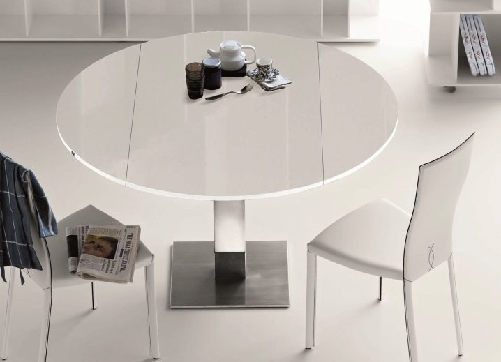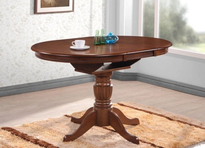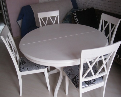 Übrigens, in der Variante mit solchen Tischen ist es ratsam, den Kauf eines runden oder ovalen Möbelstückes in Betracht zu ziehen. Im Gegensatz zum Umständlichen kann solch ein Tisch an die Wand gestellt werden, nachdem seine Seitenwand gefaltet und ein Kegelstumpf erhalten wurde. Sie sind entlang der größeren oder kleineren Seite gebildet, die Hauptsache für Sie zu entscheiden und zu wählen, was Sie brauchen.