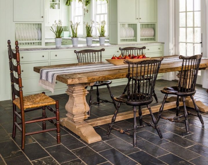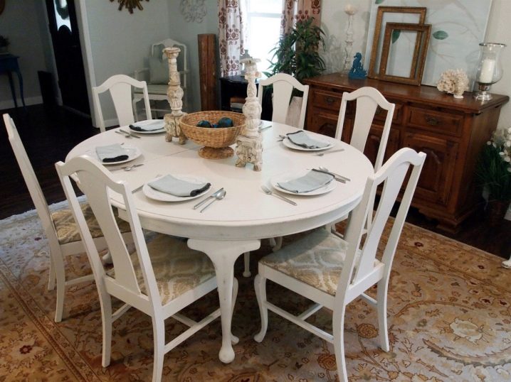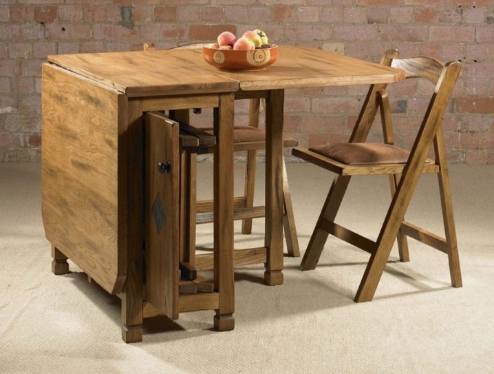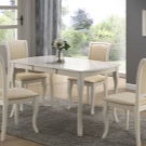Wenn Ihre Wohnung einen großen Tisch, aber die Anzahl der Menschen, die hinter ihm instabil, dann können Sie zwei oder drei Stühle mit Rückenlehne erhältlich. Für die übrigen Sitze können kompakten Stuhl oder Klappstühle verwendet werden. Sie sind leicht unter dem Tisch oder Schrank zu reinigen.