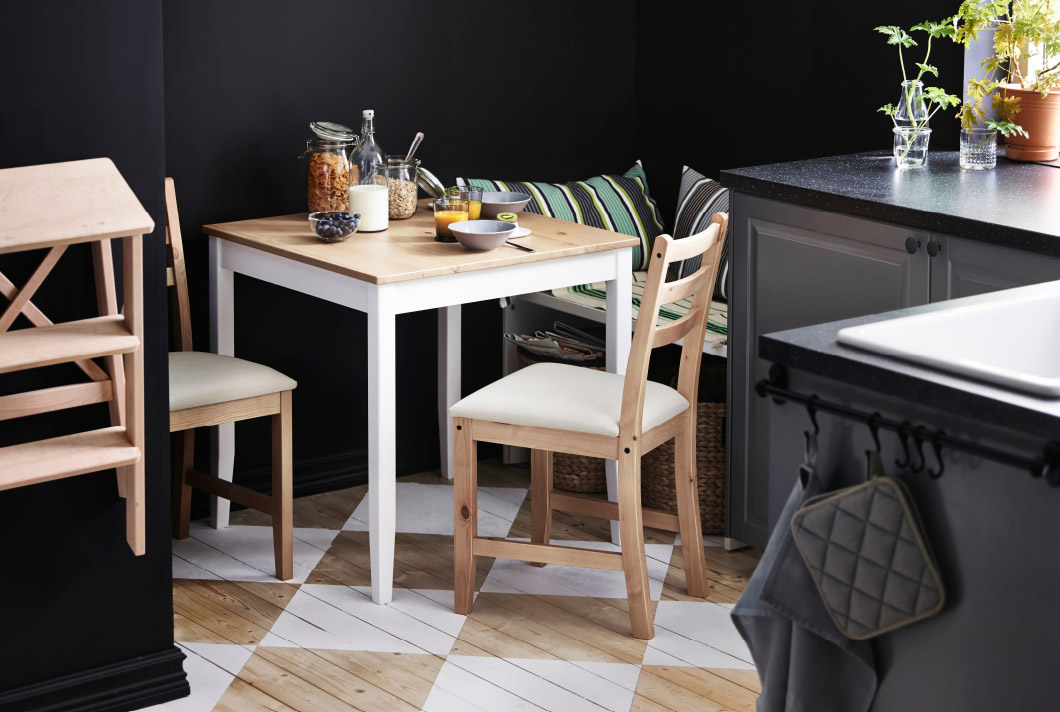 Die Auswahl an Esstischen und Stühlen für die Küche ist recht groß. Es gibt verschiedene Farbschemata, verschiedene Formen und Größen. Für eine kleine Küche gibt es Optionen für die Umwandlung von Tabellen, die Platz sparen können.