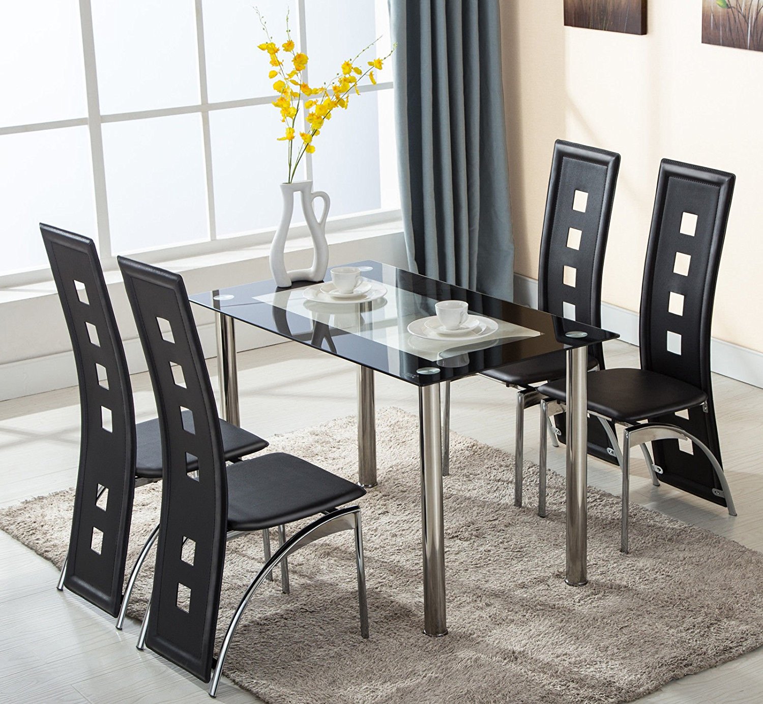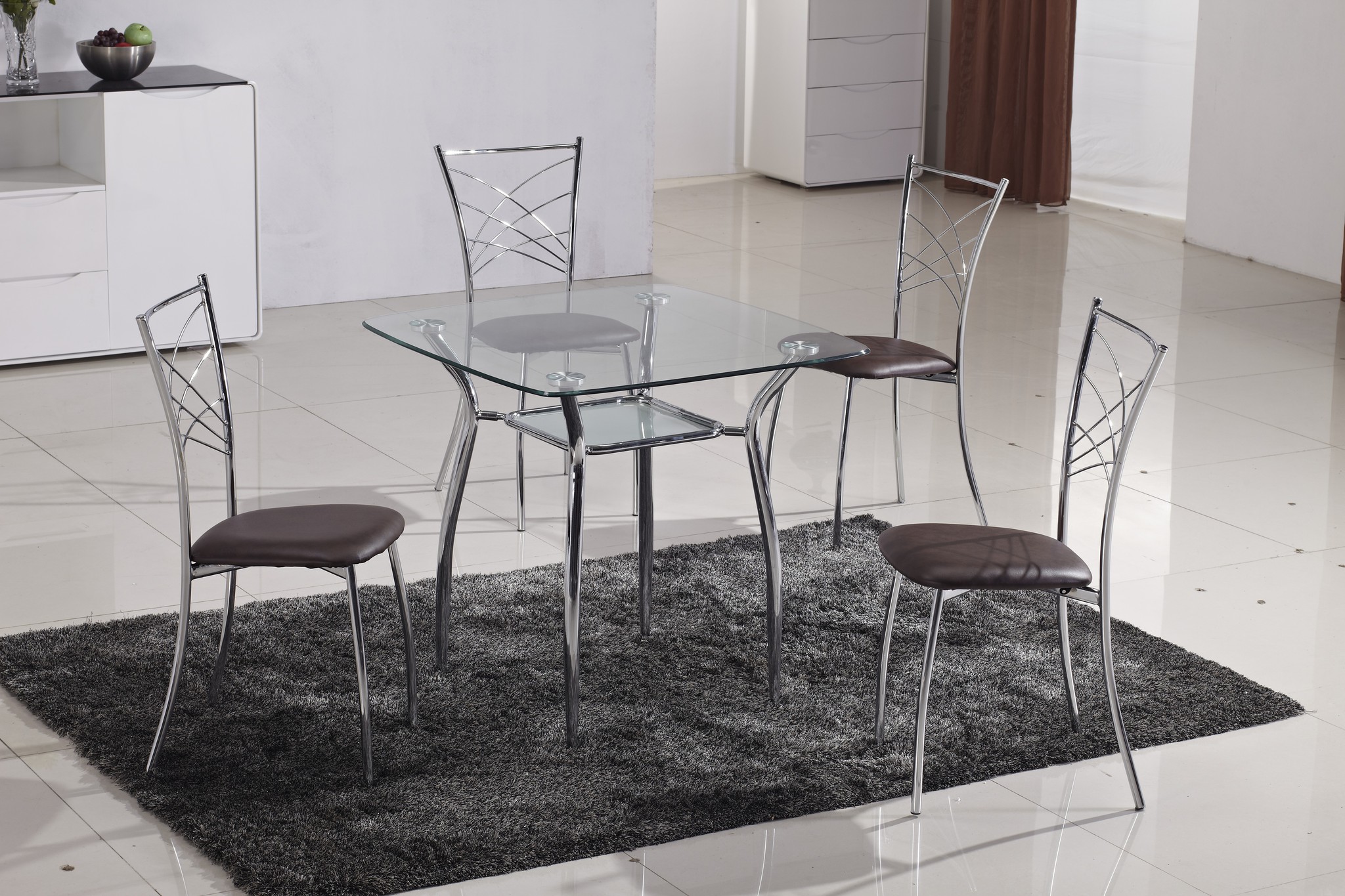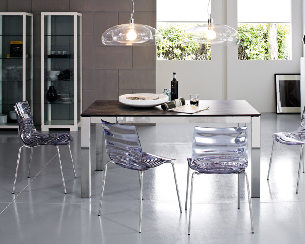 Glasplatten haben viele Farbvariationen. Sie können transparent, spiegelnd, mattweiß, farbig und mit Fotodruck sein. Kombiniert mit Chrom- oder Plastikstühlen. Achten Sie bei der Auswahl besonders auf die Dicke der Tischplatte - sie sollte nicht kleiner als 10 mm sein.