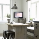 - Es ist notwendig zu bestimmen, wie oft Gäste bei Ihnen vorbeikommen und in welcher Menge. In jedem Fall wäre es für eine kleine Wohnung angemessen, ein kompaktes Modell von Esszimmermöbeln mit einem zusätzlichen Rand von 30 cm und mehr in der Länge des Tisches zu kaufen. Wenn Gäste oft und zu 2-3 Personen kommen, lohnt es sich, einen großen Transformatortisch zu kaufen, der im Alltag wie ein niedriger Schrank aussieht, und für eine Weile verwandelt sich das Festmahl in einen vollwertigen Essbereich für 6-8 Personen.