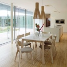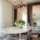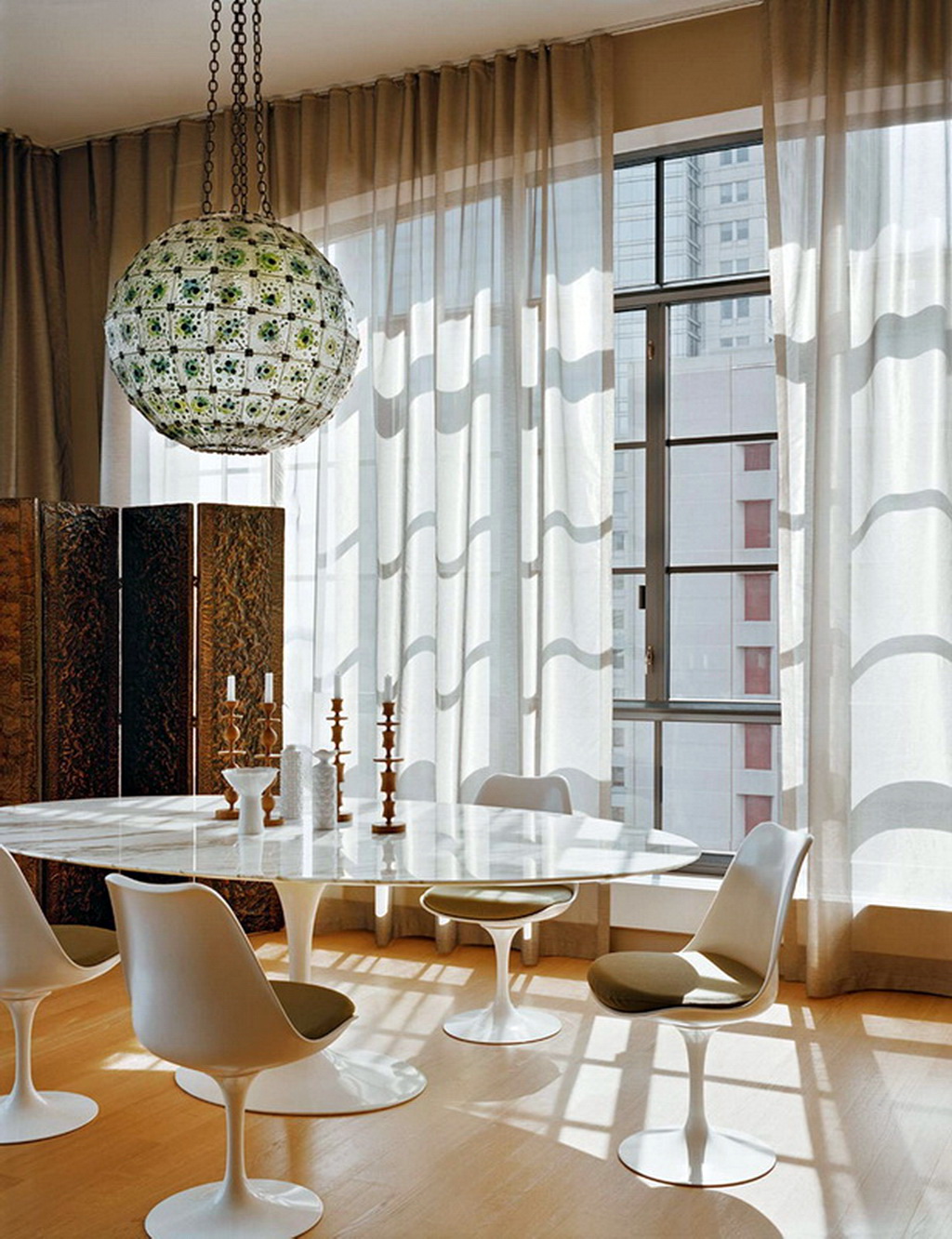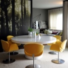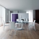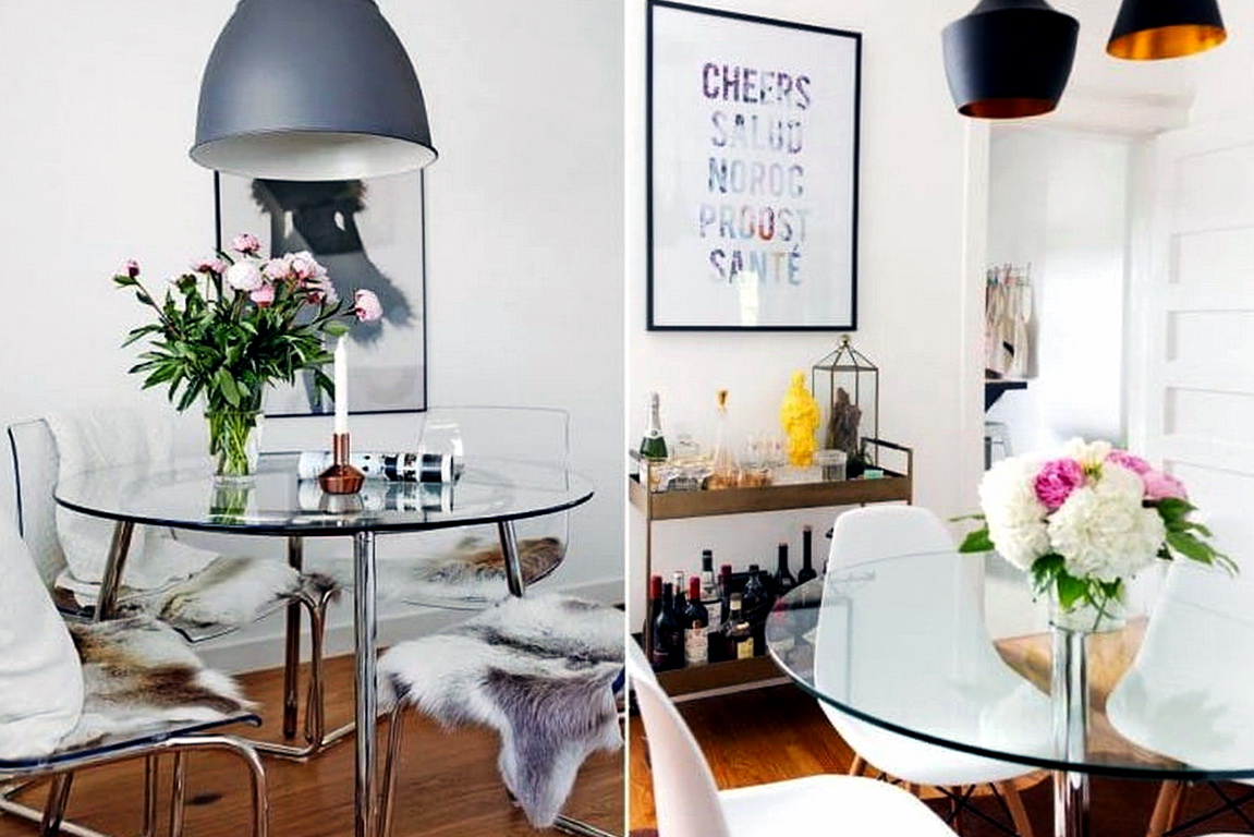 Die runde Glasplatte eignet sich für das moderne Format des Esszimmers, Textilien oder Pelzkissen für Stühle helfen, die "luftigen" Möbel zu variieren. Bild 2