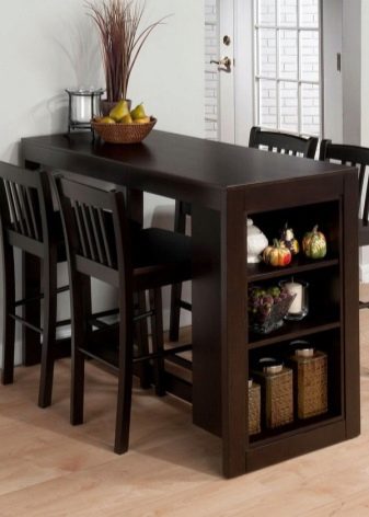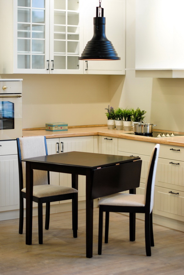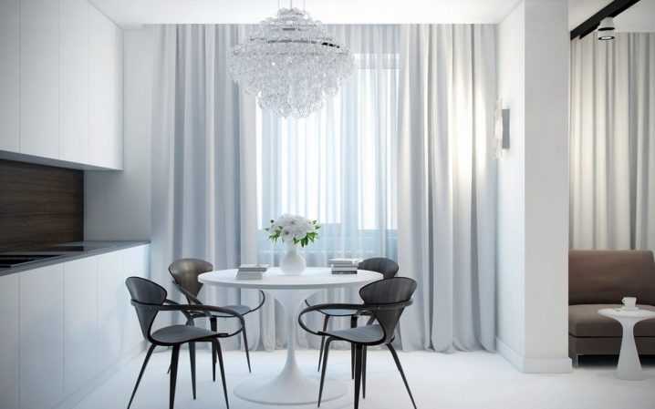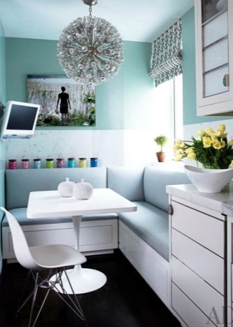 - Je nach Größe der Küche-Esszimmer wählen Sie Möbel große oder kompakte Größe. Für kleine Küchen in Chruschtschow Möbel passen quadratische oder rechteckige Form mit Parametern, zum Beispiel die Länge und Breite von 80x80 cm oder eine Mindestbreite von 50 cm.