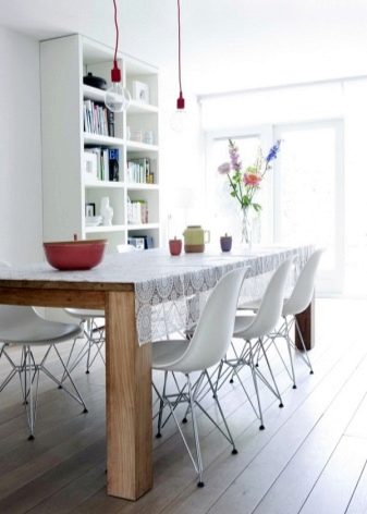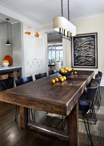 - Kann Tischplattenmaterial nicht auswählen? Entscheiden Sie, ob Sie den Esstisch um den Raum herumbewegen oder ihn zum Beispiel ins Wohnzimmer verschieben werden? Eine positive Antwort deutet auf die Anschaffung eines leichten Tisches (MDF, Spanplatte, Kunststoff, Kunststein) hin, das Gegenteil, oder Negativ, legt nahe, dass man sich für einen Tisch aus schwerem Massivholz oder Metall entscheiden kann.