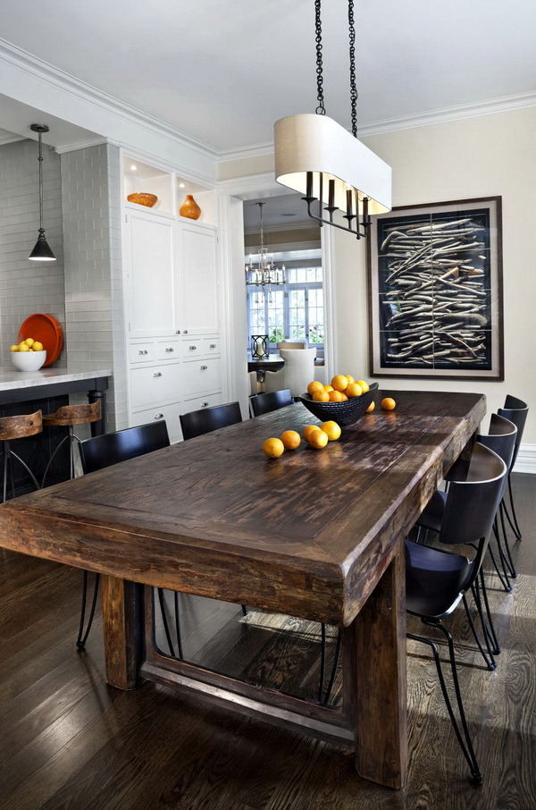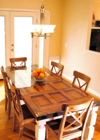 Möbel mit rechteckiger Form und Holzfarbe passen in jede Küche und sind nicht verpflichtet, den Tisch mit anderen Möbeln zu verbinden. Bild 3