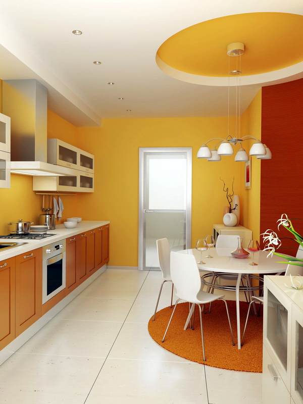 Die Farbschattierungen unterscheiden sich signifikant durch die Verwendung verschiedener Materialien - natürlich und künstlich. Traditionell wird die Farbe des Möbelstücks dem Ton des Küchensets, der Farbe der Wände oder des Fußbodens, der Haushaltsgeräte oder gar nichts angepasst. Für die Harmonie des Innenraums ist es wichtig, einen einzigen Ton des Raumes beizubehalten: warm oder kalt, und verschiedene Schattierungen von einander zu kombinieren.