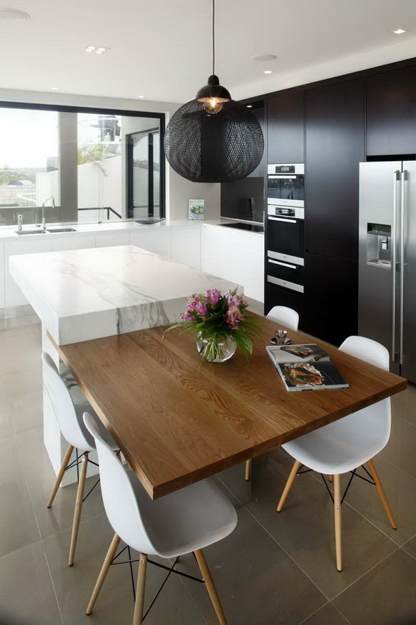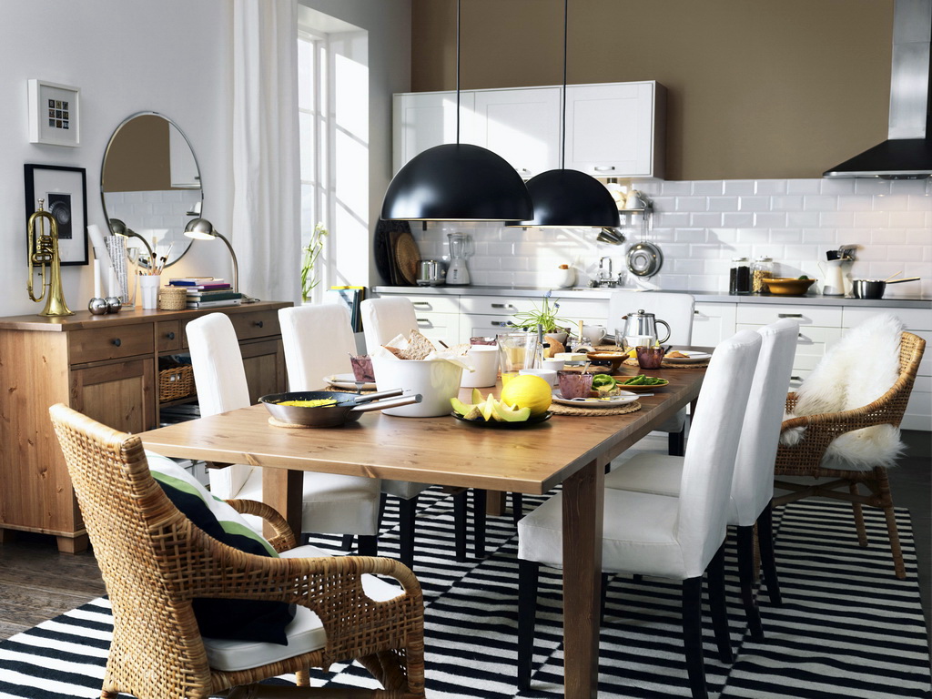 Der Esstisch befindet sich im Inneren jeder Küche und unterscheidet sich je nach Größe des Raumes und seiner Anordnung, Küchengestaltung und seiner eigenen Funktionalität: