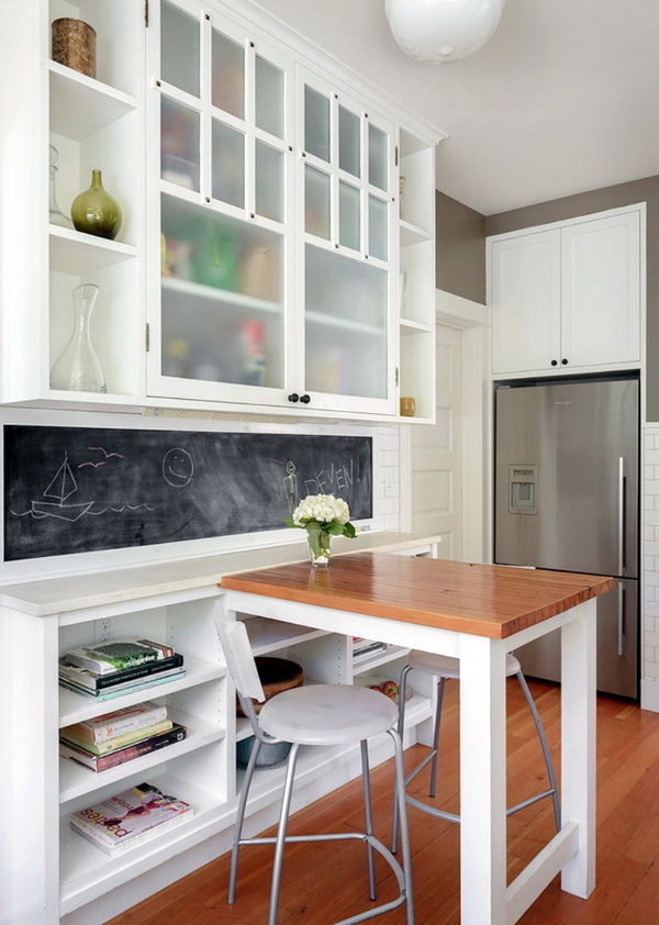 - In kleinen Küchen kann es gleichzeitig zum Essen und Kochen dienen, wenn die Arbeitsplatte der Küche nicht ausreicht.