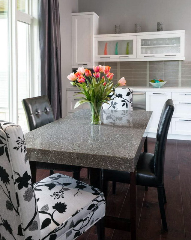 Arbeitsplatte aus Kunststein sieht in den Klassikern und dem strengen Format der Küche stilvoll aus. Die praktische, verschleißfeste Tischplatte wirkt gewichtig und teuer, sie wiegt ein wenig und ist relativ preiswert.