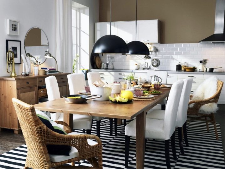 Es empfiehlt sich, sich vor dem Kauf von Möbeln die Lage des Eßtisches vorzustellen, was eine rationale Annäherung an den Such- und Auswahlansatz ermöglicht, wichtige Kriterien, Material und Parameter identifiziert. Im Voraus erstellen Sie einen Plan für die Küche-Esszimmer und arrangieren die Möbel, um nicht die Küche überfluten und bieten Platz für jedes Familienmitglied und häufige Gäste.